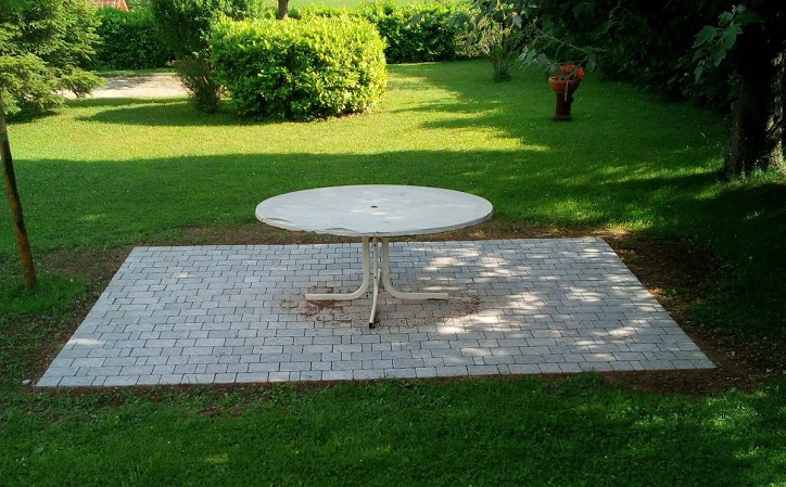 Cette technique est souvent utilisée pour paver une dalle béton ou pour la pose de pavés irréguliers: Le pavage sur chape de mortier permet d’ajuster la profondeur du pavage et de palier aux différences entre les pavés.